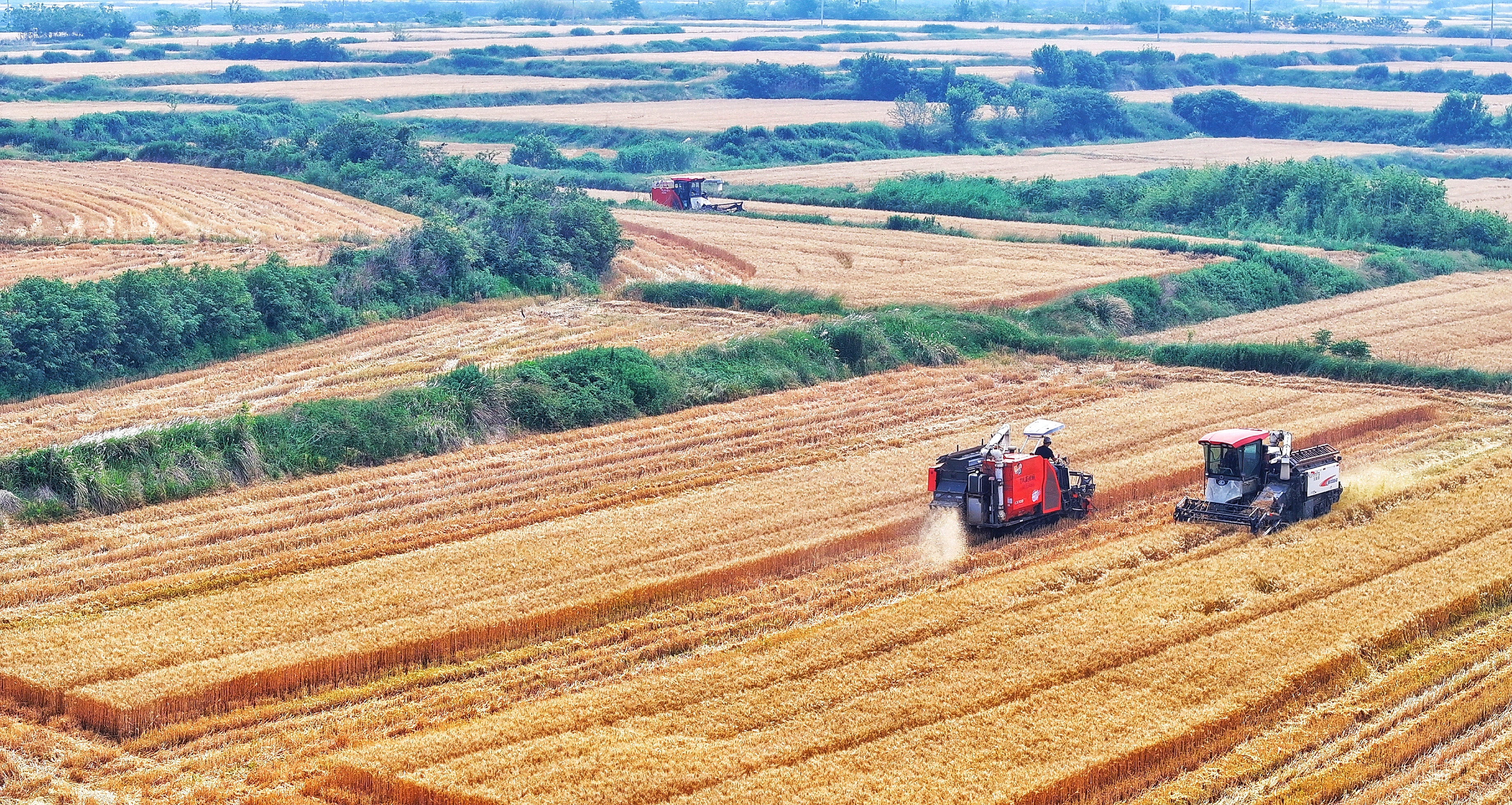 由南到北有序推进小麦收割。